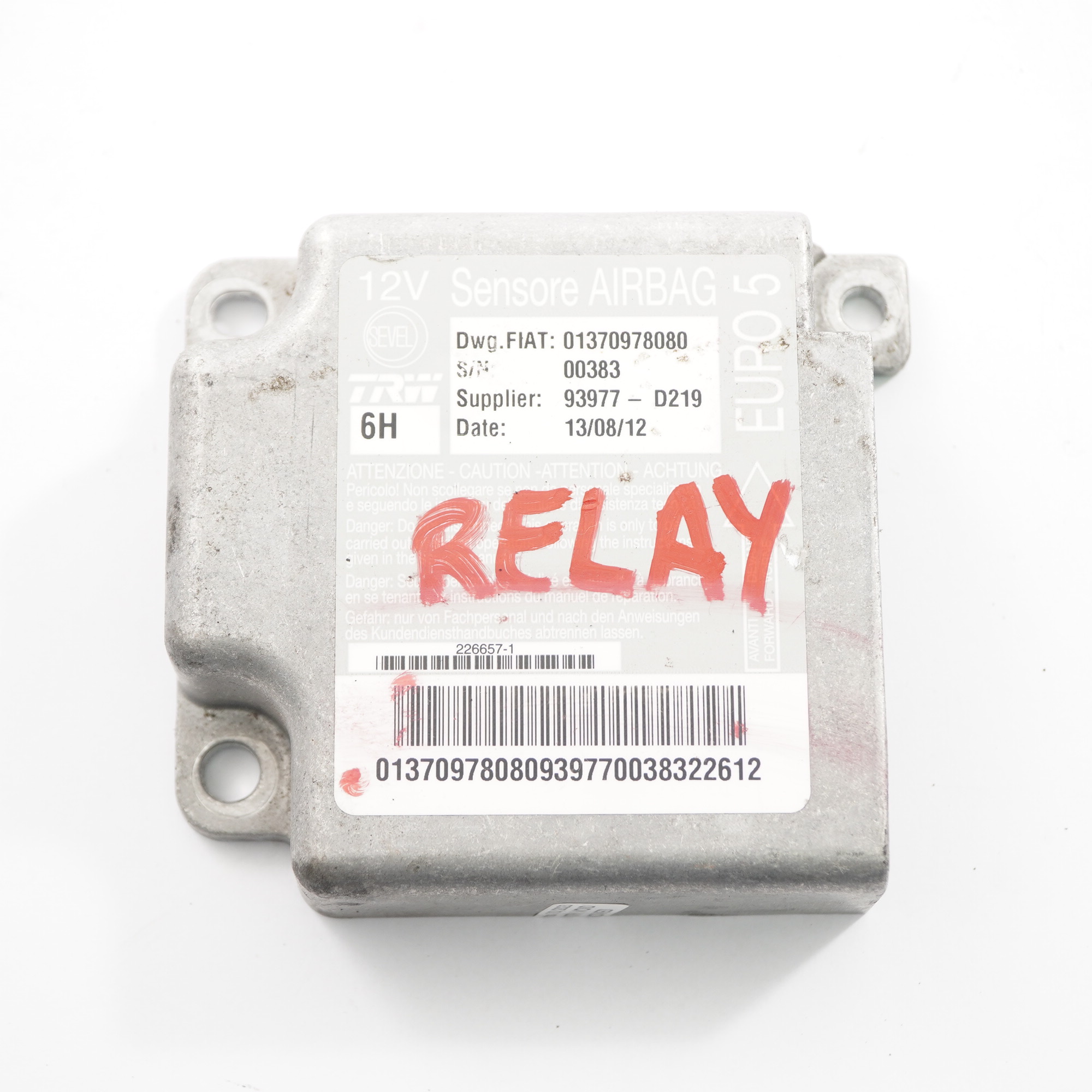 Airbag Module Citroen Relay Fiat Ducato Air Bag Control Unit 01370978080
