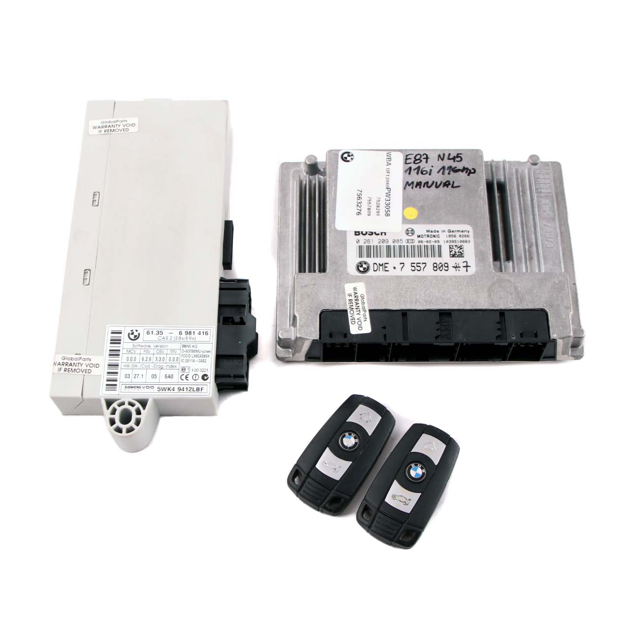 BMW 1 3 E87 E90 N45 116i 316i Petrol ECU Kit DME 7557809 + CAS 2 + Keys Manual